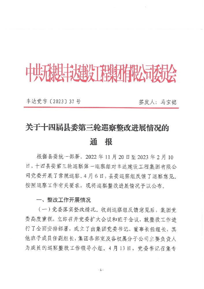 關于十四屆縣委第三輪巡察整改進展情況的通報