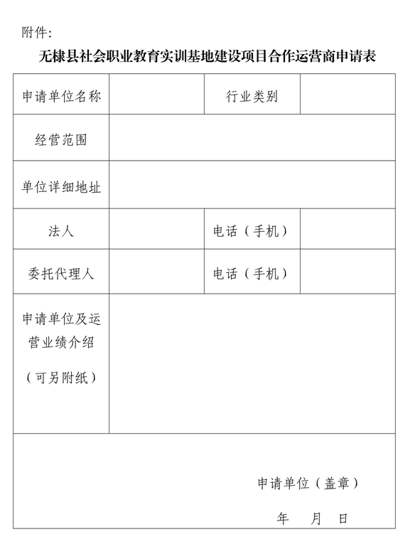 無棣縣社會職業教育實訓基地項目合作運營商征集公告